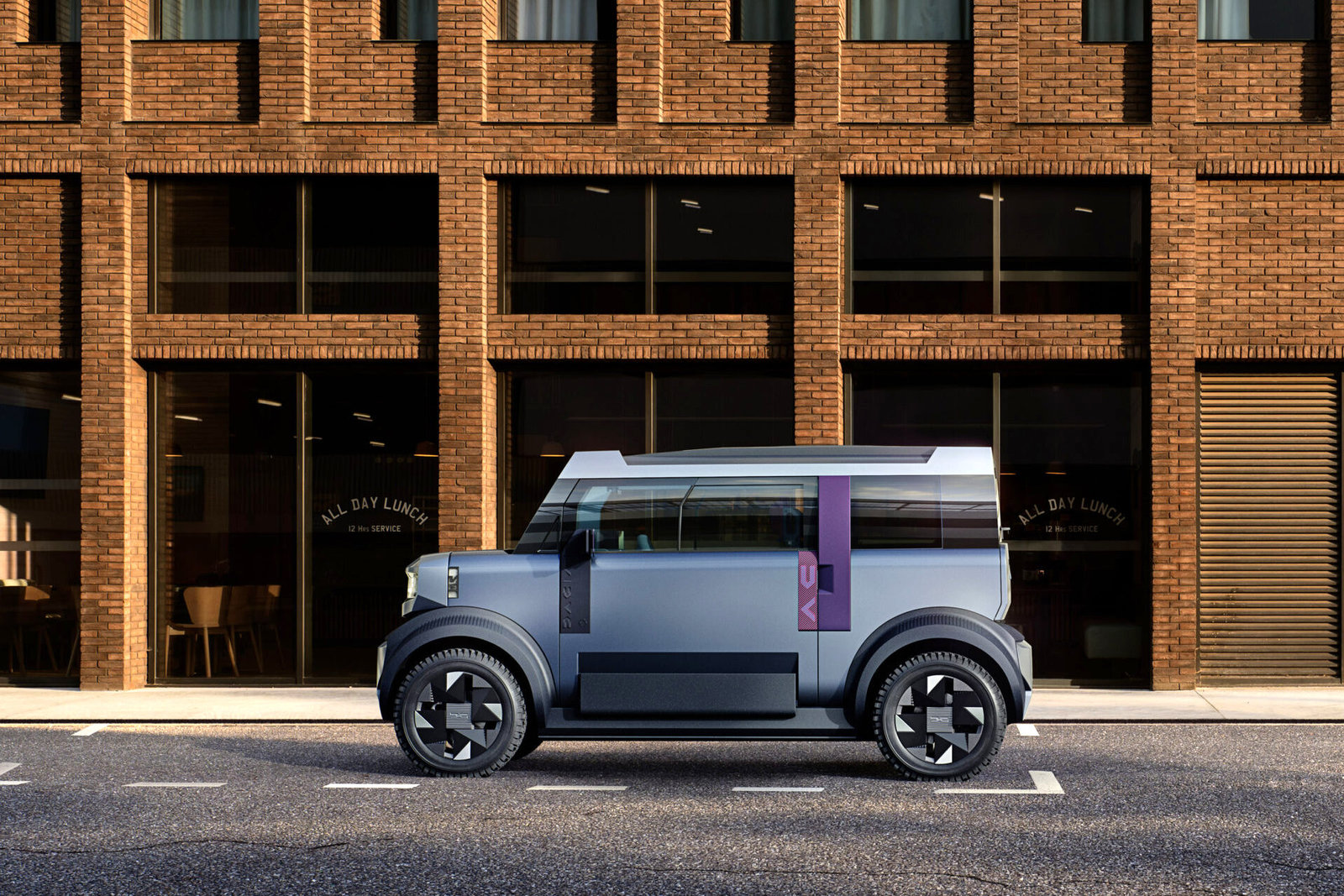 Het ontwerp is functioneel. Wielen op de hoeken beperken de overhangen en leveren een lange wielbasis op; kaarsrechte ruiten en een steile voorruit maximaliseren binnenruimte. De tweedelige achterklep is handig in krappe straten. Doel: vlot instappen, goed zicht en veel bruikbare liters in een klein voetafdrukje. Het resultaat oogt hoekig, maar is vooral efficiënt.