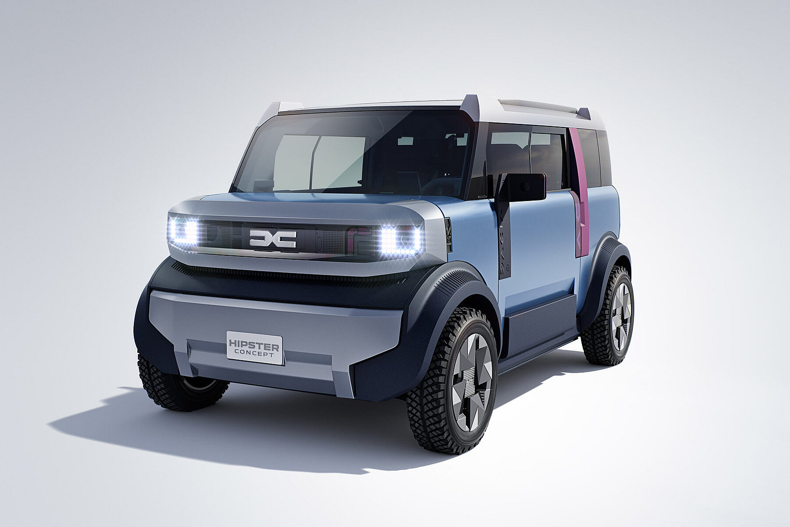 De Dacia Hipster Concept meet slechts 3,00 x ~1,55 x ~1,53 meter. Binnenin staan bruikbaarheid en gewichtsbesparing centraal: een vlakke vloer, een bank voorin en een modulair ingedeelde achterruimte die in de conceptfase varieert tussen 70 en 500 liter. De ambitie is een rijklaar gewicht onder 800 kilo, een topsnelheid van circa 90 km/u en een range die gericht is op ritjes in de stad en regio. Hiervoor volstaat een kleine accu. Dat drukt materiaalgebruik en energie bij productie, en ook de prijs en het gewicht. Ook kan de benodigde laadapparatuur bescheiden zijn.