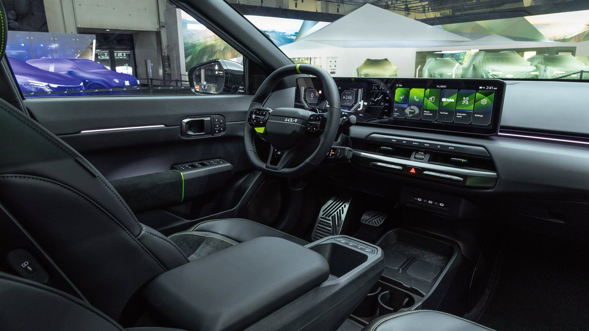 Belangrijker nog is de afstemming van het onderstel. De elektronisch geregelde ophanging krijgt een GT-specifieke set-up, met minder rolbeweging en meer controle bij hogere snelheden. Kia combineert dat met bredere banden en grotere wielen, wat direct invloed heeft op stuurgevoel en stabiliteit.