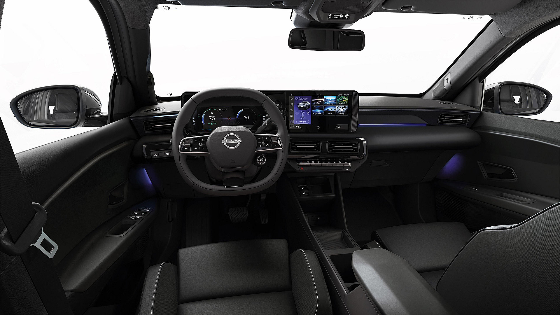 Binnenin valt op dat de Nissan Micra Business Edition niet als kale zakelijke versie is neergezet. De Engage Business Edition krijgt onder meer een 10,1 inch scherm, draadloze Apple CarPlay en Android Auto, parkeersensoren achter, privacyglas, all-seasonbanden en een 11 kW-lader. Ook een warmtepomp voor de accu en automatische climate control met planning via de app horen erbij. Dat maakt de instapversie bruikbaarder dan je op basis van de prijs misschien verwacht.