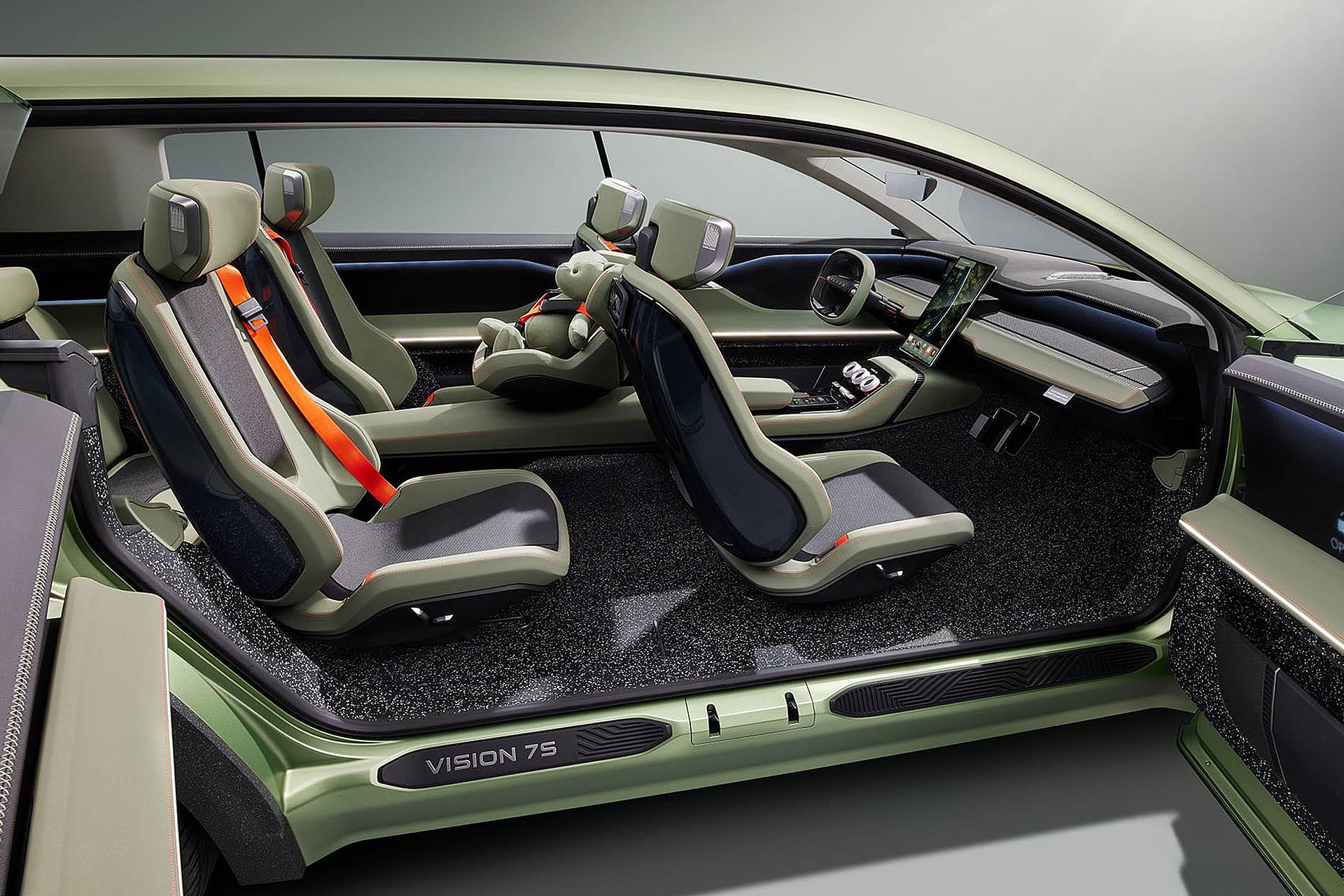 Dat betekent zeven volwaardige zitplaatsen, niet een noodoplossing voor incidenteel gebruik. Skoda benadrukt dat de auto is ontworpen rond gezinnen die dagelijks onderweg zijn, met kinderen, bagage en uiteenlopende ritten. Dat vraagt om een andere indeling dan bij vijfzits SUV’s, zeker in elektrische vorm.